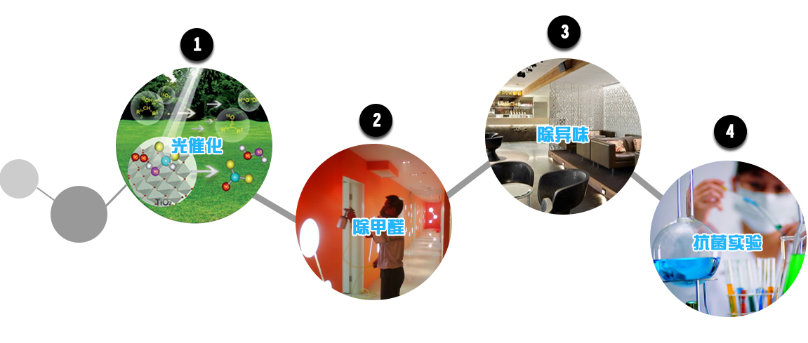 在認(rèn)識【光觸媒】之前,要先了解什么是【觸媒】。觸媒是日語,翻譯成中文叫催化劑。催化劑是能在化學(xué)反應(yīng)中加速反應(yīng)速率,而本身在反應(yīng)前后并不發(fā)生變化的物質(zhì)。光觸媒是一種以納米級二氧化鈦為代表的具有光催化功能的光半導(dǎo)體材料的總稱。它涂布于基材表面,在光線的作用下,產(chǎn)生強(qiáng)烈催化降解功能:能有效地降解空氣中有毒有害氣體;能有效殺滅多種細(xì)菌,并能將細(xì)菌或真菌釋放出的毒素分解及無害化處理;同時(shí)還具備除臭、抗污、凈化空氣等功能。 稻田光觸媒采用【磷灰石被覆納米二氧化鈦分子結(jié)構(gòu)】,具有吸附、分解、去除、無毒化的特質(zhì)。表面磷灰石包覆技術(shù)不直接接觸基材表面,在充分發(fā)生氧化反應(yīng)的同時(shí)對基材本身無腐蝕。其中的【磷灰石】成分,具有強(qiáng)大的吸附能力,可以隨時(shí)吸附空氣中的異味源、細(xì)菌、病毒等有害物質(zhì),再交由【二氧化鈦】在光源下進(jìn)行分解反應(yīng),因此能夠24小時(shí)吸附、分解